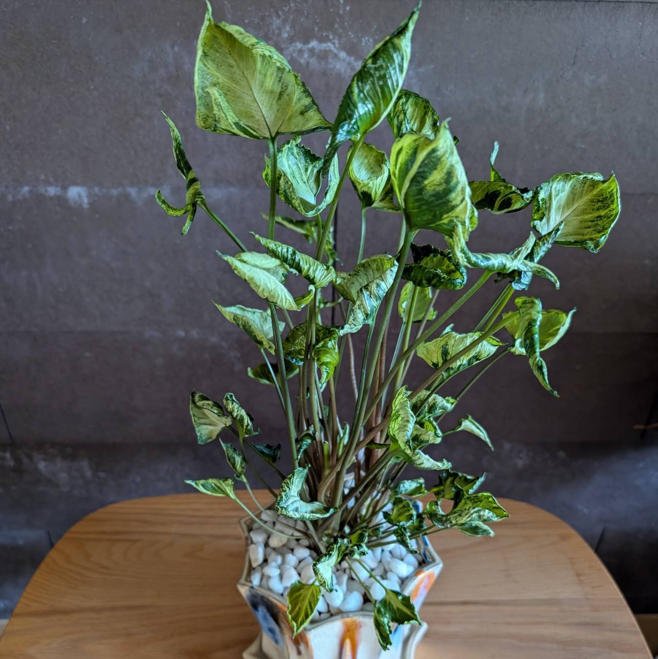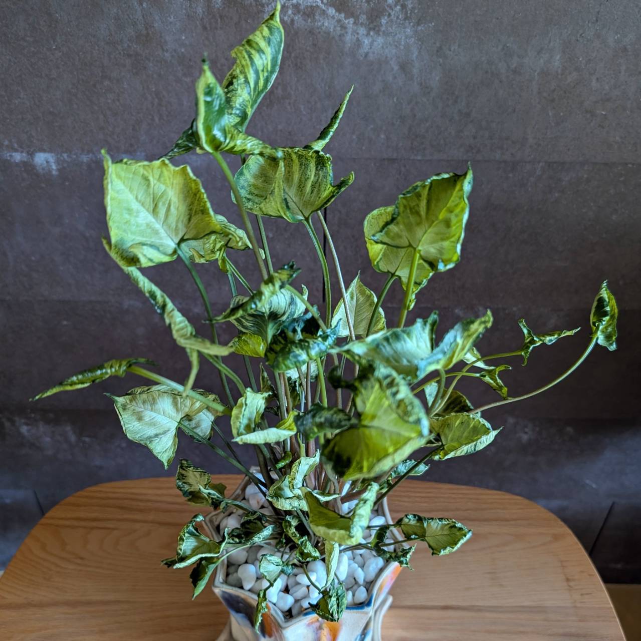 一般的なシンゴニウムとは異なる葉姿は流通量も比較的少なく、“少し違うものを選びたい方”に人気。