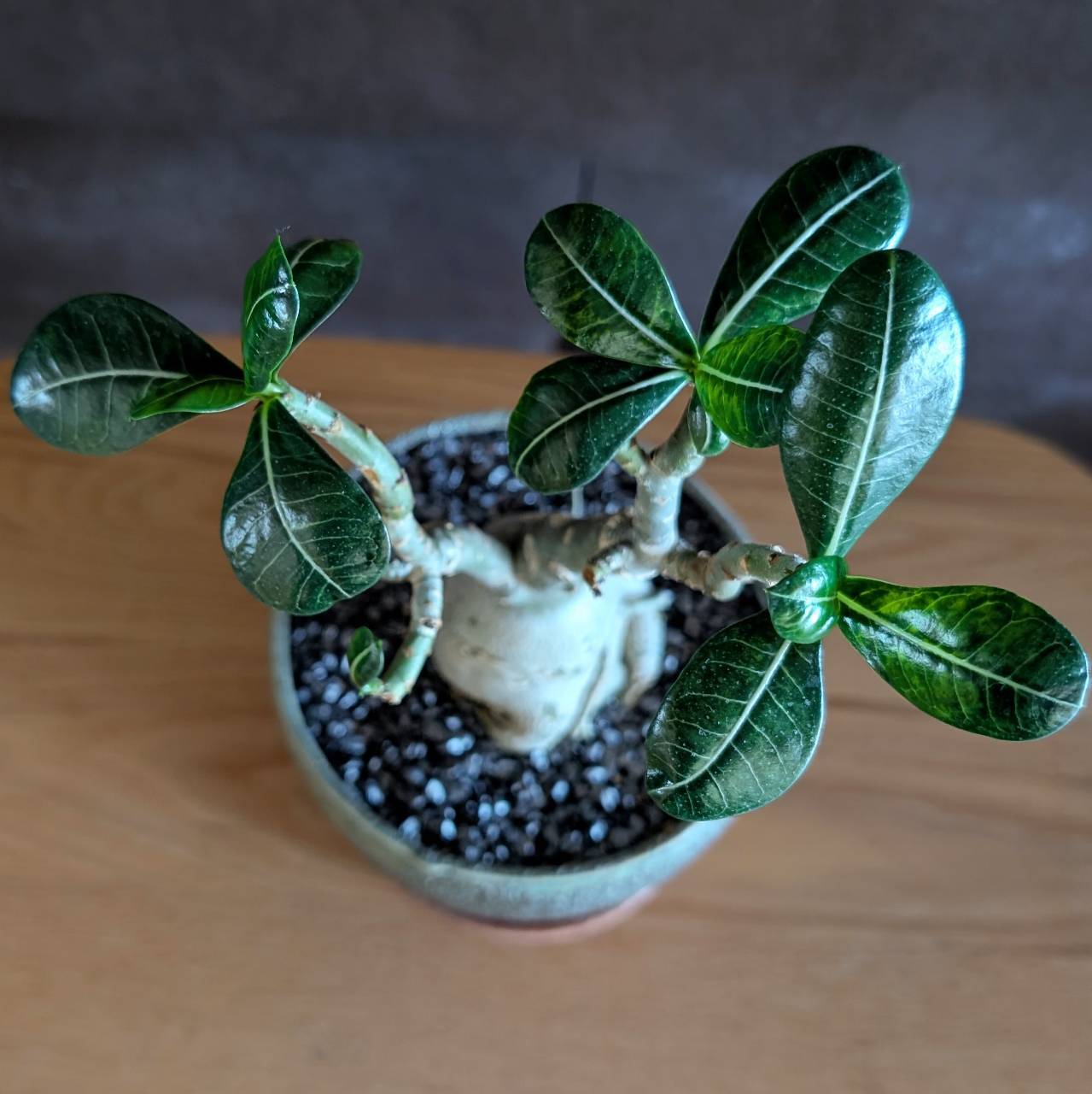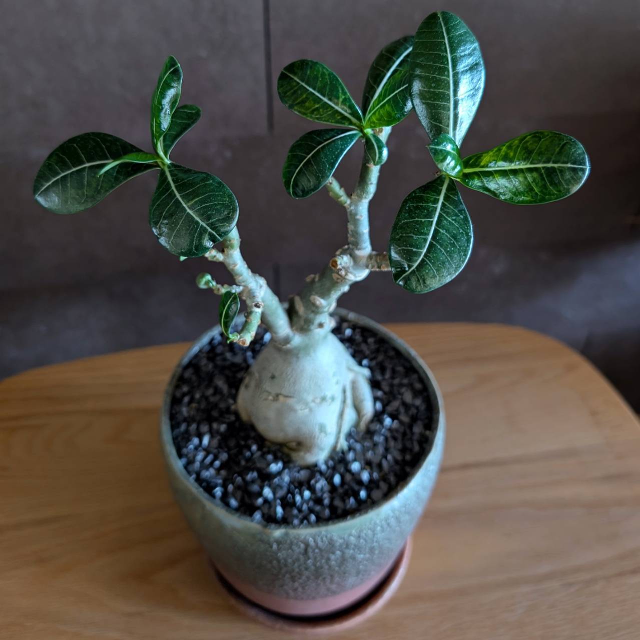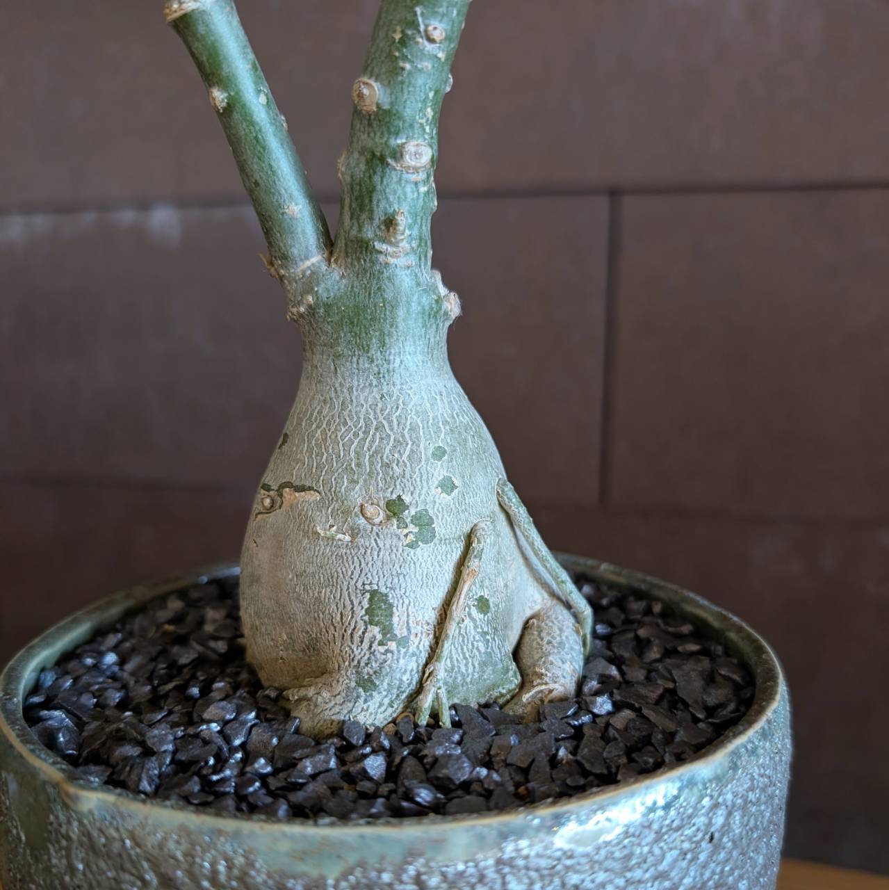「砂漠のバラ」とも呼ばれ、成長と共に塊根はさらにふくらみ、世界にひとつだけのシルエットへと変化していきます。