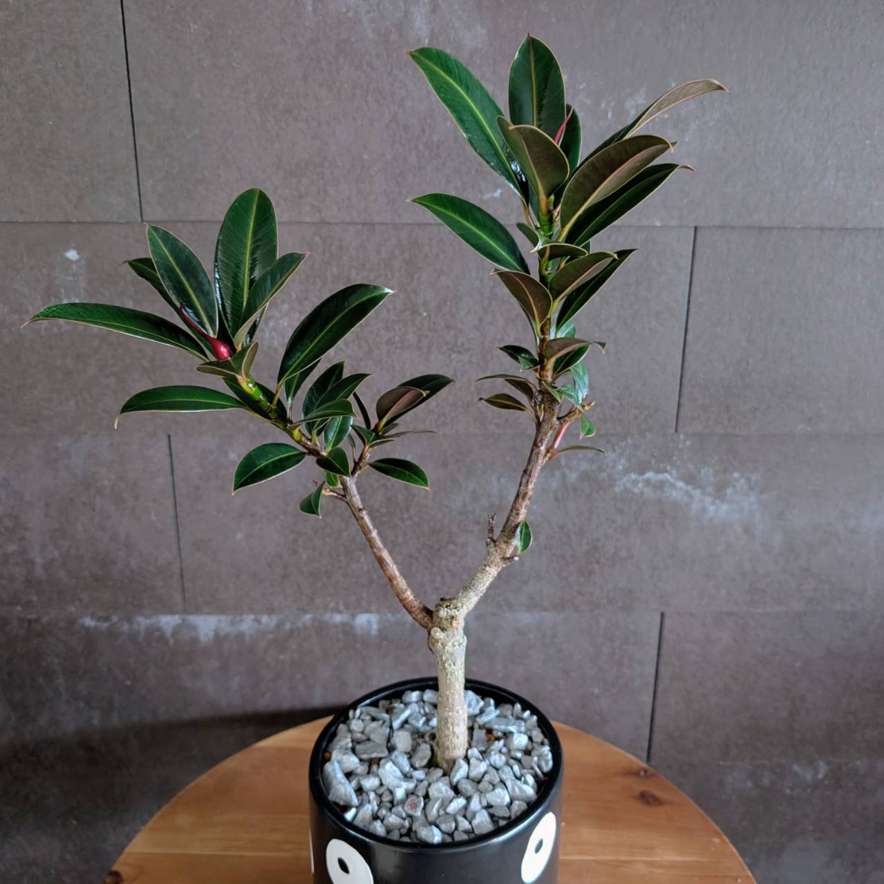 落ち着いた色合いの中に、ふと現れるやわらかな変化が、フィカス・メラニーならではの魅力。