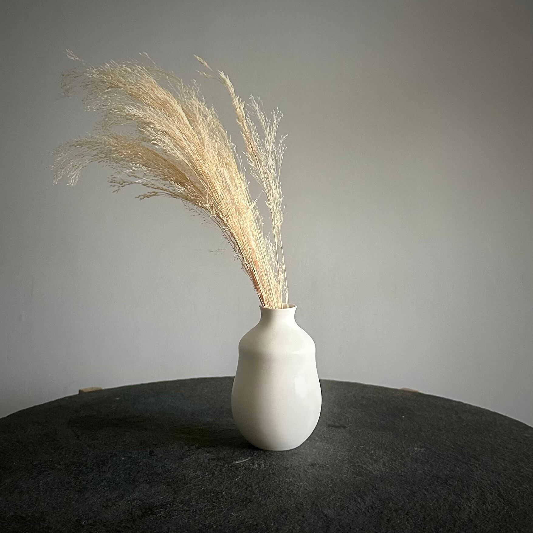 「一輪挿し(白)A」は、優雅でミニマルなデザインが魅力。柔らかい白のトーンとすっきりとしたフォルムは、一輪の花を飾るだけで空間を洗練された雰囲気に変える力を持っています。どんな花とも相性が良く、インテリアに自然なアクセントを加えるアイテムです。